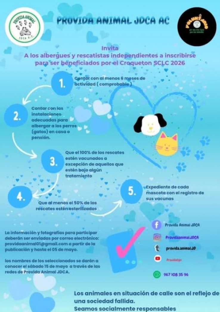 San Cristóbal, 14 de abril del 2026.- Con un mensaje claro y sin espacio para malentendidos, Celeste Coello Armas, Presidenta y Fundadora de Provida Animal JDCA A.C., anunció el arranque de la 4ª edición del Croquetón SCLC.
